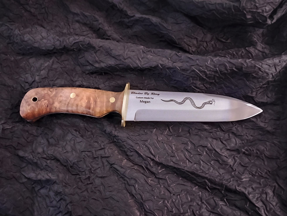 My knives are uniquely designed and custom made. You will never find anything like them because no two are the same. Custom laser engraving and custom leather sheaths are now available.